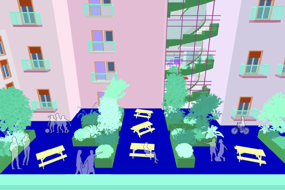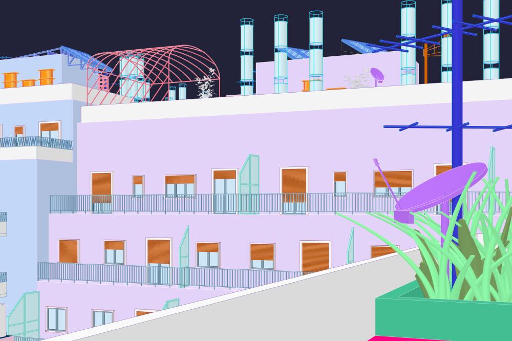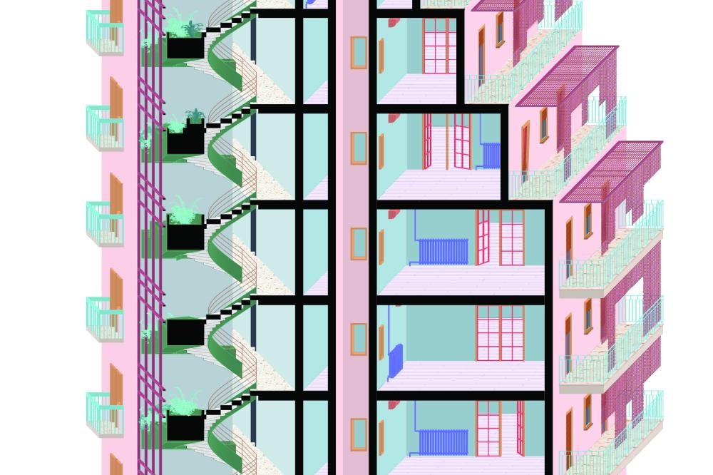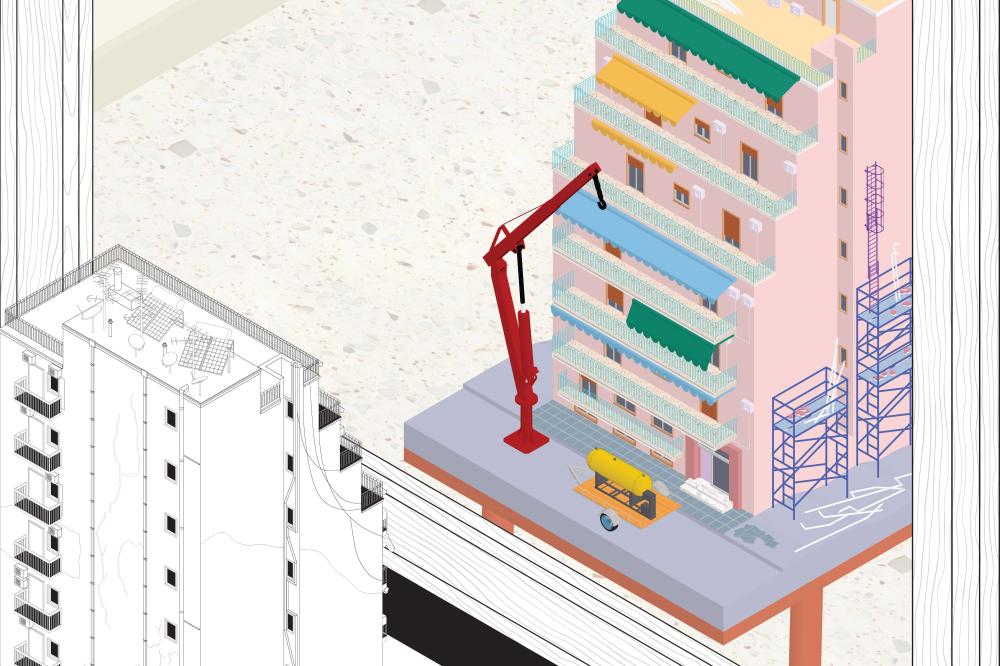 The dominant building typology in Athens, Greece is the stepped-back polykatoikia, or apartment building. Originally conceived as a collective action model, the residents of the polykatoikia would come together to make decisions since no one person or entity owned the building. Today, the polykatoikia is failing due to financial depression, inflation, and the war in Ukraine, which has drastically affected the energy economy in Greece. As each resident prioritizes their own financial situation, taking action together toward the betterment of the building has fallen away. The polykatoikias themselves have also fallen into disrepair and are in desperate need of consistent maintenance and accessibility updates. In addition, the excess of tourism with the overwhelming presence of Airbnbs has interrupted residential life. In neighborhoods like the politically active and radical Exarcheia, Airbnbs symbolize encroachment to the highest degree and are regarded by the residents with the utmost dislike, bordering hate.