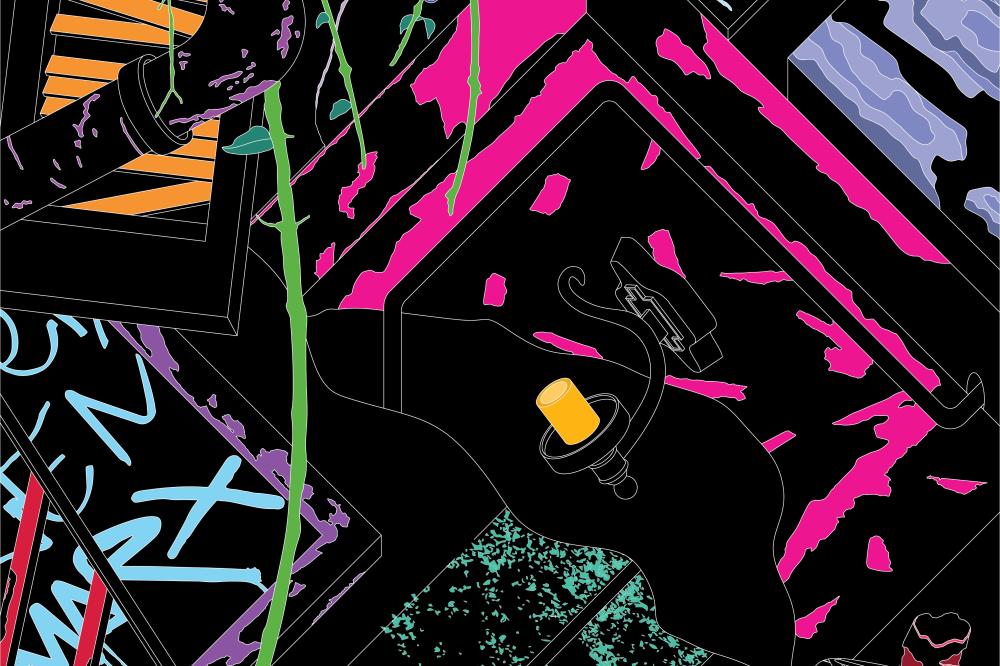 Our drawings are split into two parts. The black linework drawings represent the old polykatoikia drawn from our observations in Athens, Greece, specifically, the neighborhood of Exarcheia. Our colorful drawings evoke the sense of revitalization that would come with the Airbnb tax as the polykatoikia is improved both at the building scale and the city block. The mirror drawing divided our presentation visually as the old polykatoikia looks at its reflection as a renewed building.
