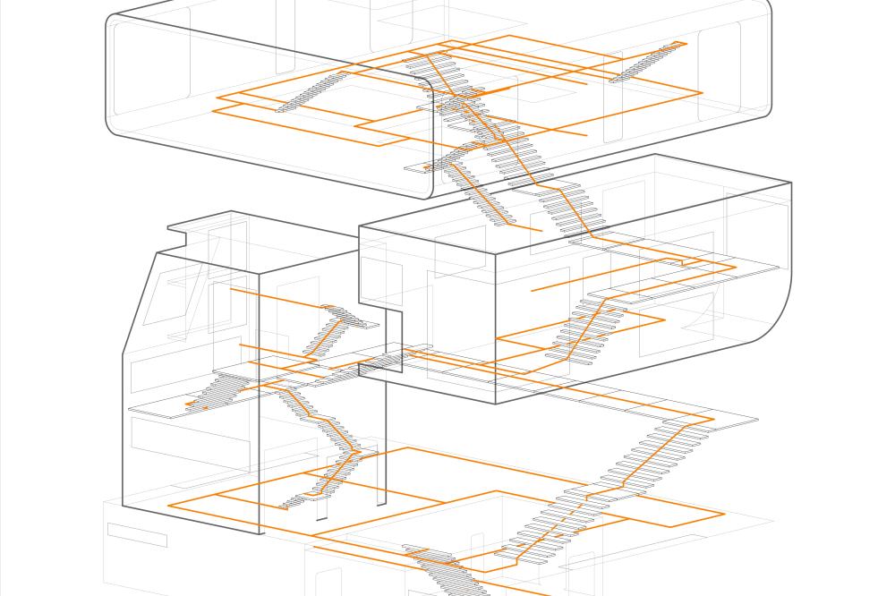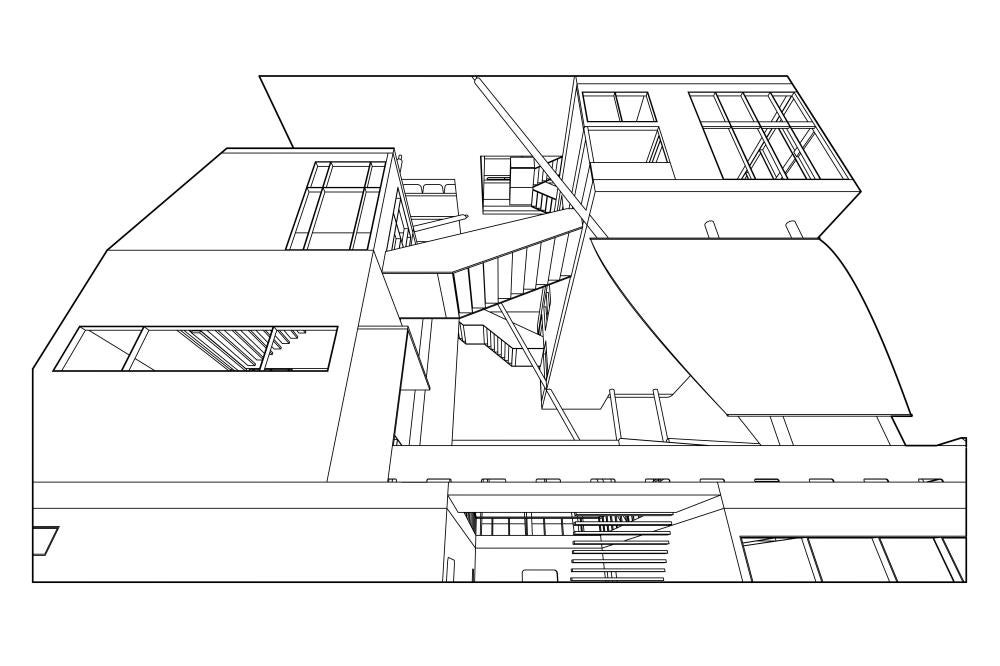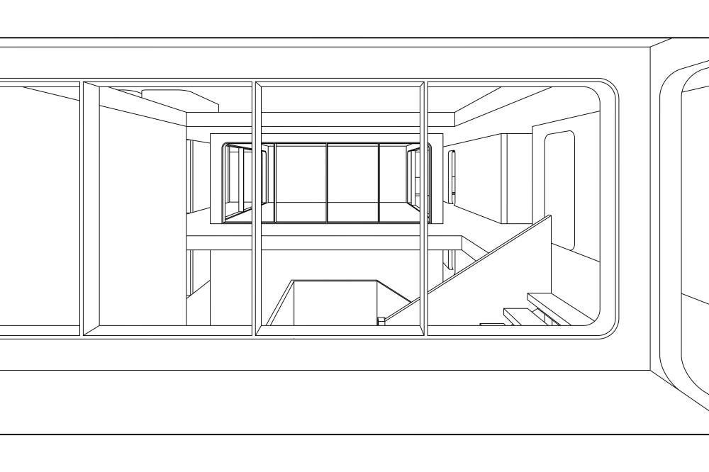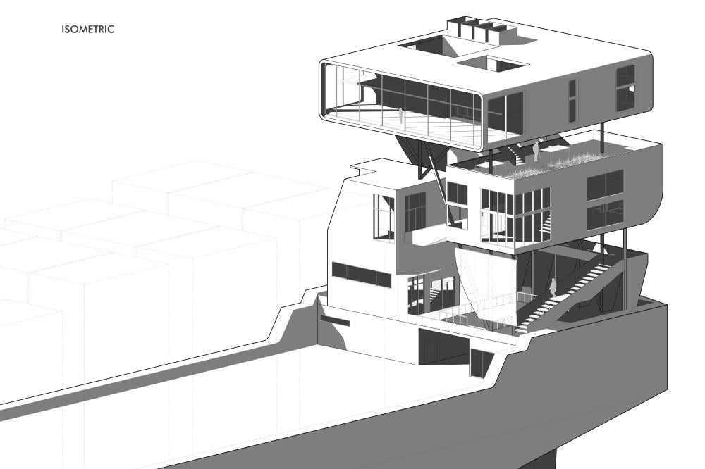 The final studio project was to redesign the command bridge of a freighter shipping vessel. My design is defined by a long path of circulation that takes crew members from the bottom deck up through several enclosed and communal spaces, such as the mess hall and gym, before reaching a top building that houses the wheelhouse/chartroom and captain/officer offices. The intention is for crew members to allow for the discovery of unique vantage points and sightlines out to the endless ocean while also fostering dynamic movement and interaction between the crew and passengers.