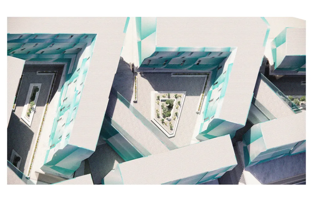 This project responds to the housing crisis in Chinatown, Los Angeles, by providing density and multifamily living for low-income and the homeless. In addition to studying financial models and financing, the project focuses on a new proposal for housing development. Sited on a vacant lot in Chinatown, the surrounding context includes a park, a transit line, and housing developments. While connecting to the surrounding context, this proposal contains critical elements that make up the overall form, such as the plinth with parking underneath and courtyards above, mixed-use space on the two lower levels, and units on the upper levels. The building is wrapped with a metal mesh to provide solar shading and unify all the different components. This project balances the formal aggregation of units, financial research, graphic and performative building envelopes, courtyards, and civic infrastructure to address the housing crisis and the urban fabric.