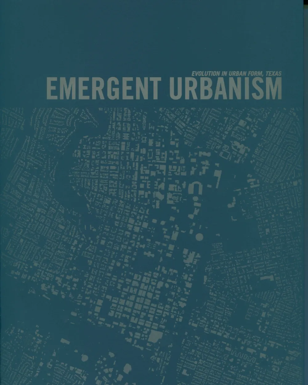 Emergent Urbanism: Evolution in Urban Form, Texas a joint Placemaking Studio, Congress for the New Urbanism, and University of Texas publication is a richly illustrated resource that tells the story of the Central Texas region, highlights current policies and up-and-coming projects, and provides balanced views on the growth, change, and prospective future of Austin.