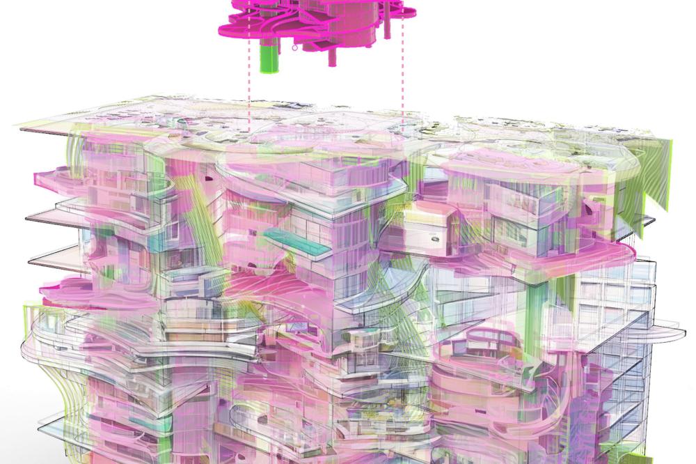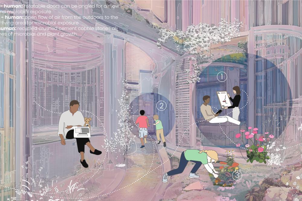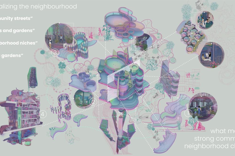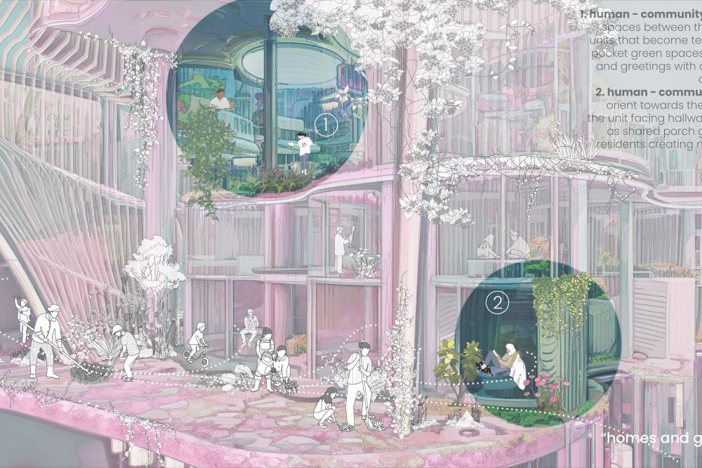 The other challenge is to establish moments of mutually beneficial interaction across three distinct scales—unit, neighborhood, and the broader building/urban scale— between all life forms through a series of architectural and interior design moves.
