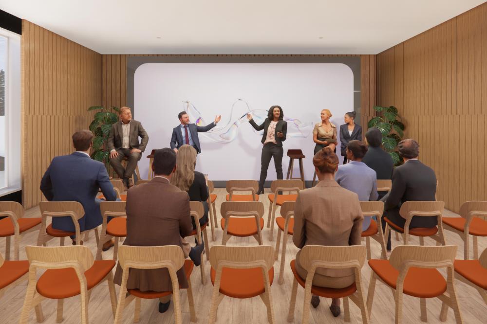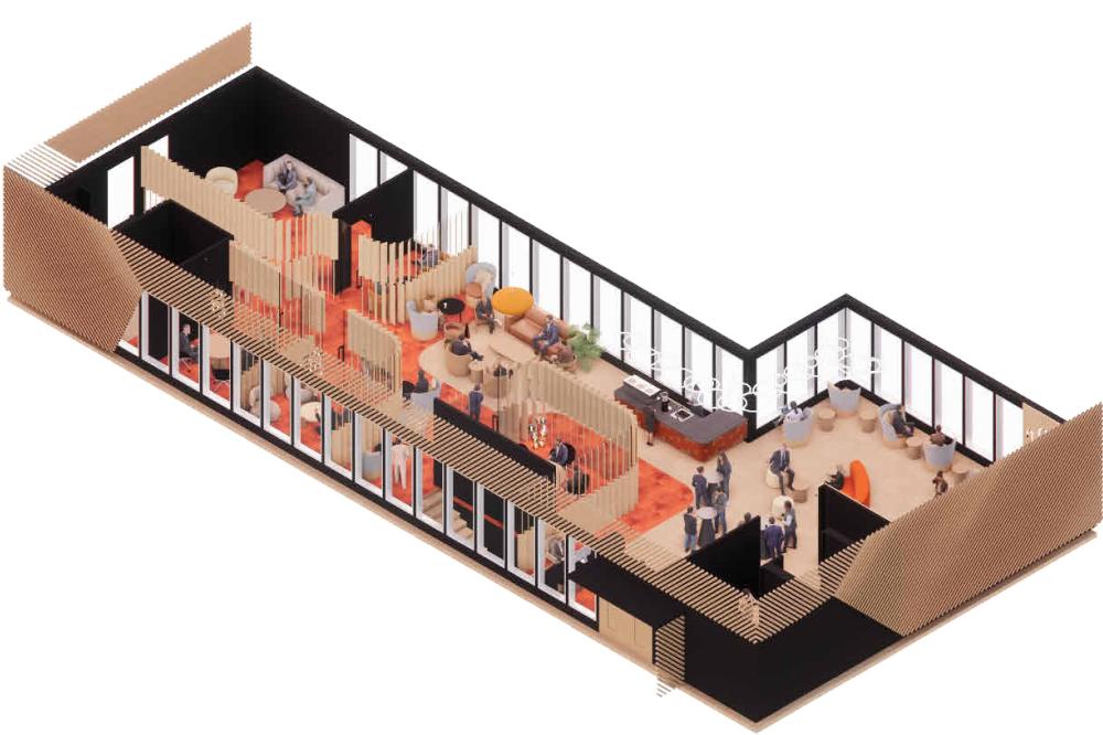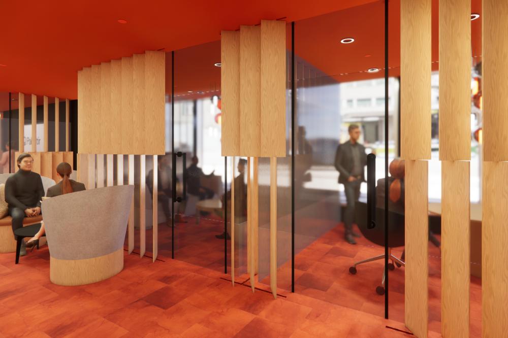 The premise of this project is to create a space for both existing and potential clients. The spatial layout is designed to establish a distinction between public and private areas through the use of color and implied boundaries. As a result, different levels of privacy are created throughout the pavilion, which encourages connections and ease of communication between the different clientele.