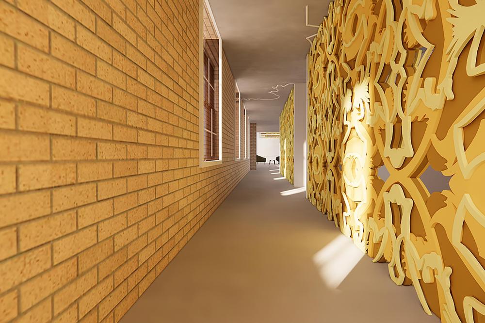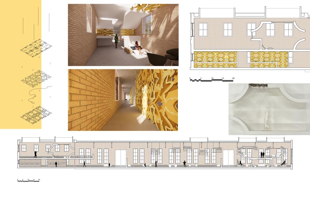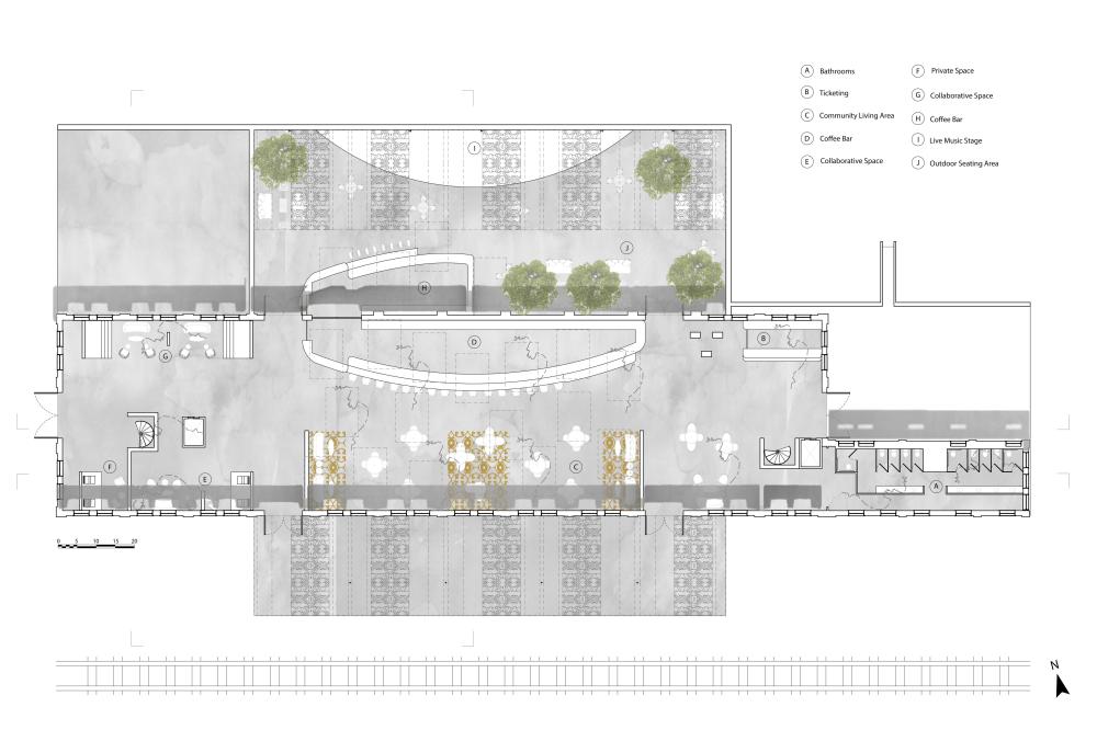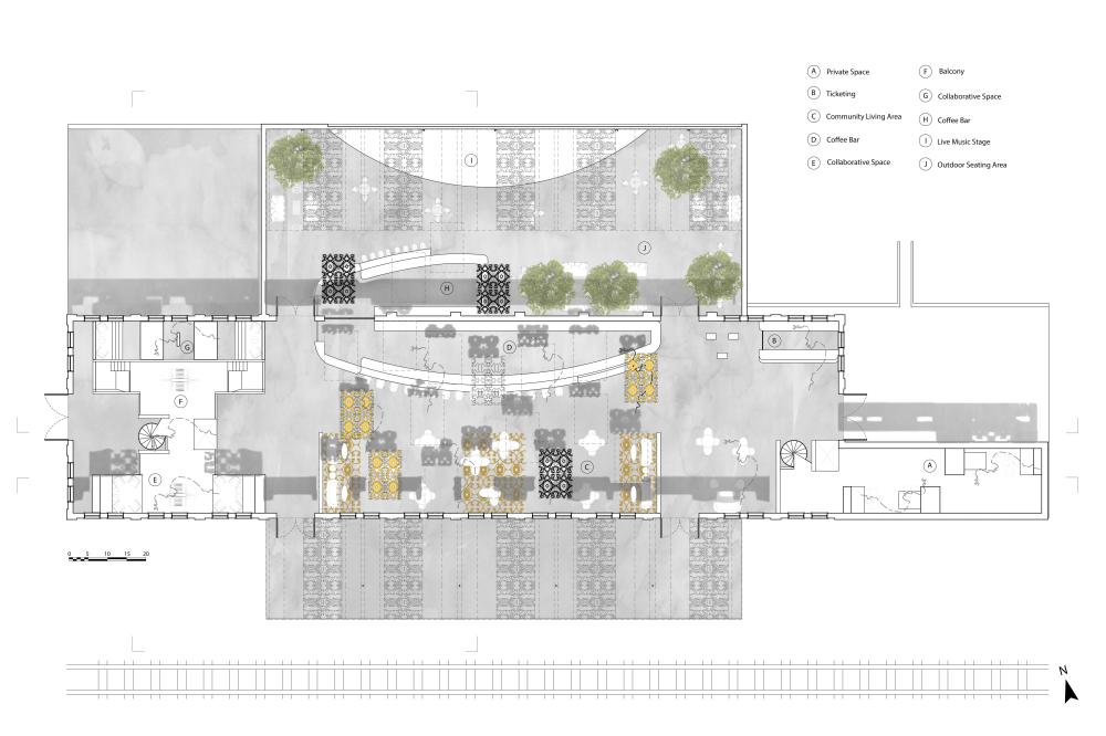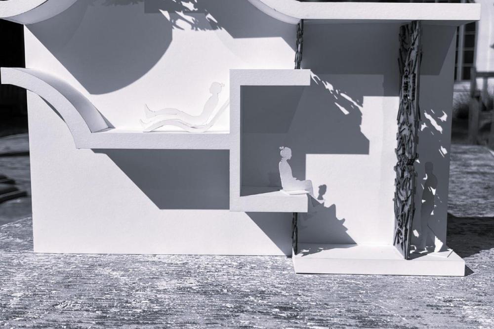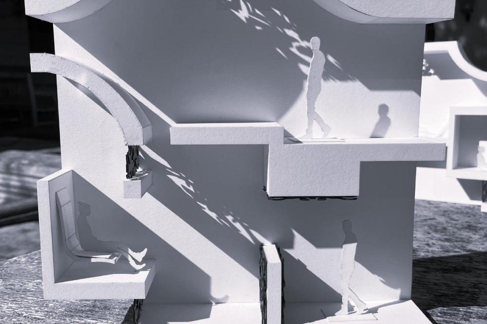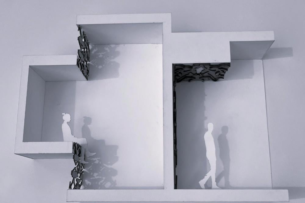 This project seeks to address issues of adjacencies and boundaries, simultaneous inhabitation, and modulation of light through the use of depth and layering. These issues are explored and achieved through walls, screens, and partitions, in addition to how those affect natural light within the space. The layered walls give depth and shadows to the spaces they create while enrobing the habitants in a pattern of light. The screens, used as a hanging ceiling, help give depth to the main living area through differing heights.