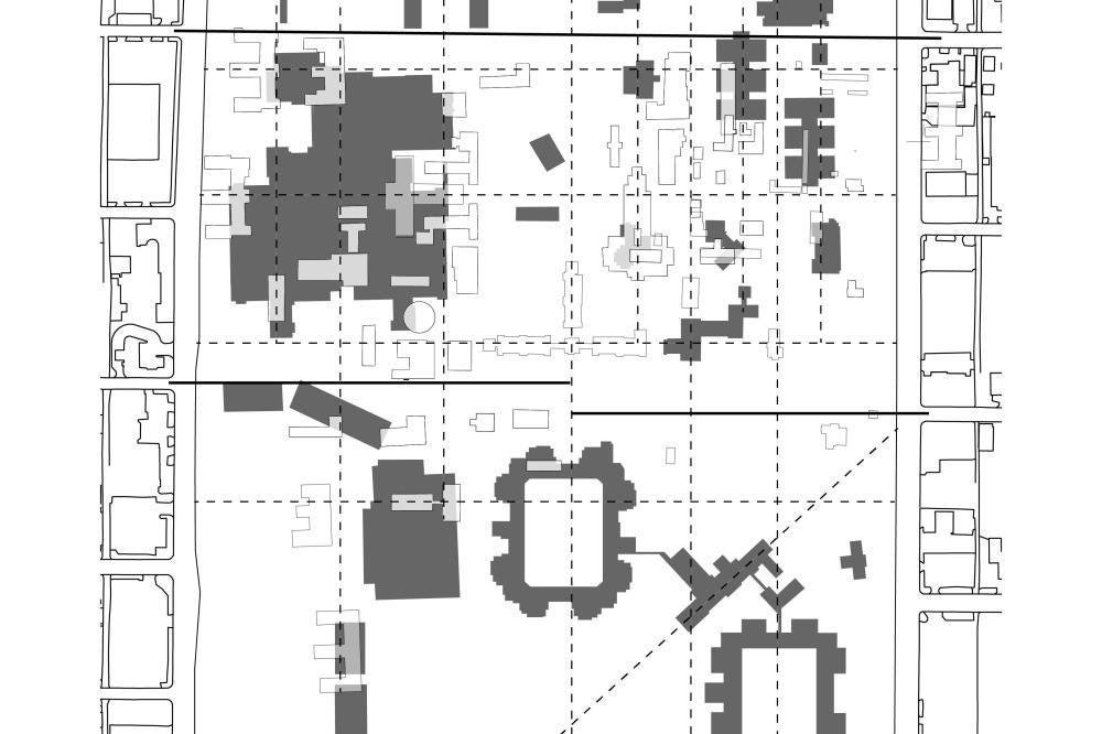 In order to repair the site, cracks were first identified. Cracks reflect previous building alignments and ordering principles as well as broken alignments with the urban grid. The existing site lacked connection to the surrounding environment and lacked an identity as a campus.