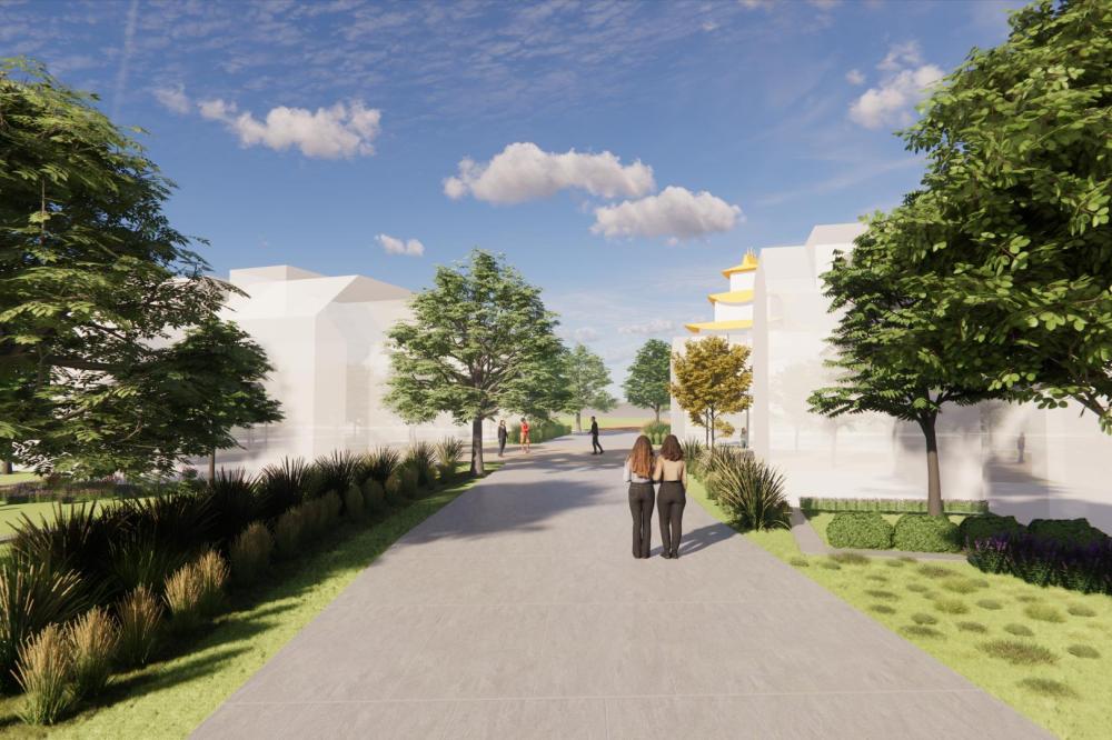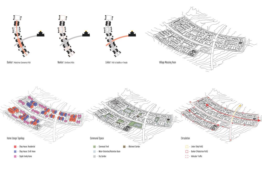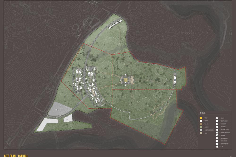 Within our team of three, we combined our expertise to develop a comprehensive framework plan, delineating distinct individual focus areas for religious spaces, housing, and an annual festival space. These areas unify into an approach that ensures a holistic experience, where the spiritual, residential, and celebratory aspects coalesce across our expansive 284-acre site. Our design accommodates and honors Tibetan Buddhist traditions and cultural values, leveraging the unique Central Texas landscape to create a viable living environment that facilitates our clients' spiritual journeys.