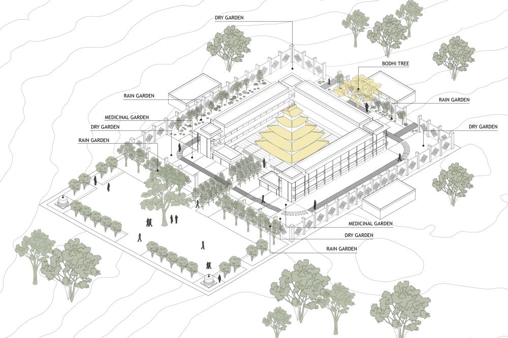 The Nature of Reality transforms the Lady Bird Johnson Wildflower Center site in Austin, Texas, into a development that hosts a congregation of Tibetan Buddhists. Understanding the diaspora of our client group, our proposal bridges culture, spirituality, and the Central Texas landscape into a haven for Tibetan Buddhists. This project integrates the traditional cultural design principles found in Tibetan monasteries and villages with the urban fabric of Austin. Its primary purpose is to create a sanctuary that acts as a catalyst for practitioners of Tibetan Buddhism to traverse the path toward Samsara. This reimagined site serves as a gateway, offering a serene transition between the traditional Tibetan religious practices and the Central Texas Hill Country, fostering an environment for profound spiritual growth and cultural exchange.