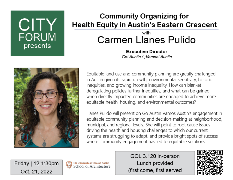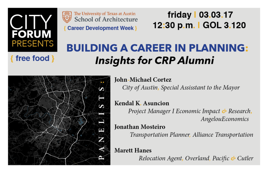 Faculty from the Community and Regional Planning program and collaborators from the City of Austin will discuss the findings of a newly released report, Expanding Pathways to Quality Jobs in Austin’s Growing Green Economy.